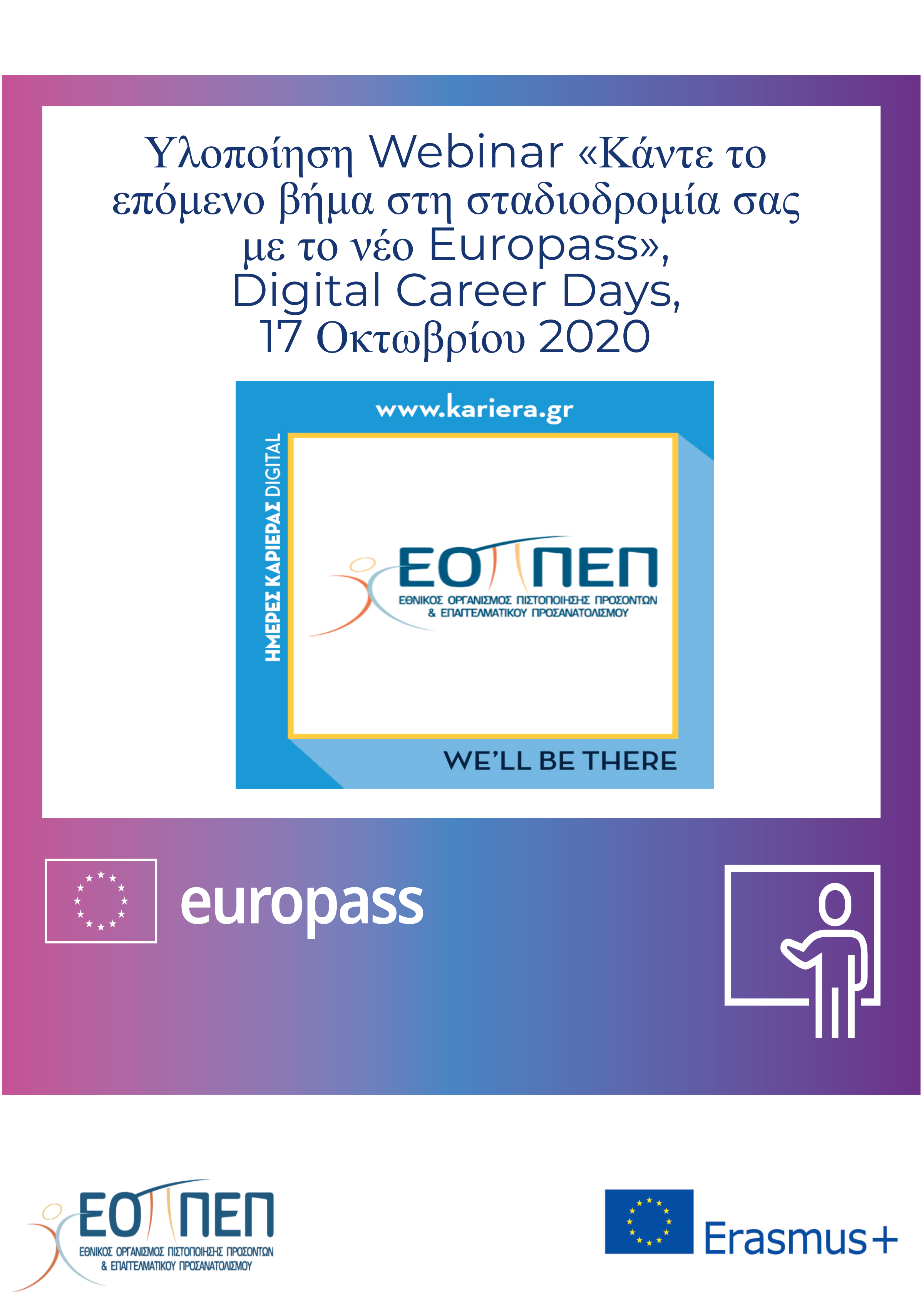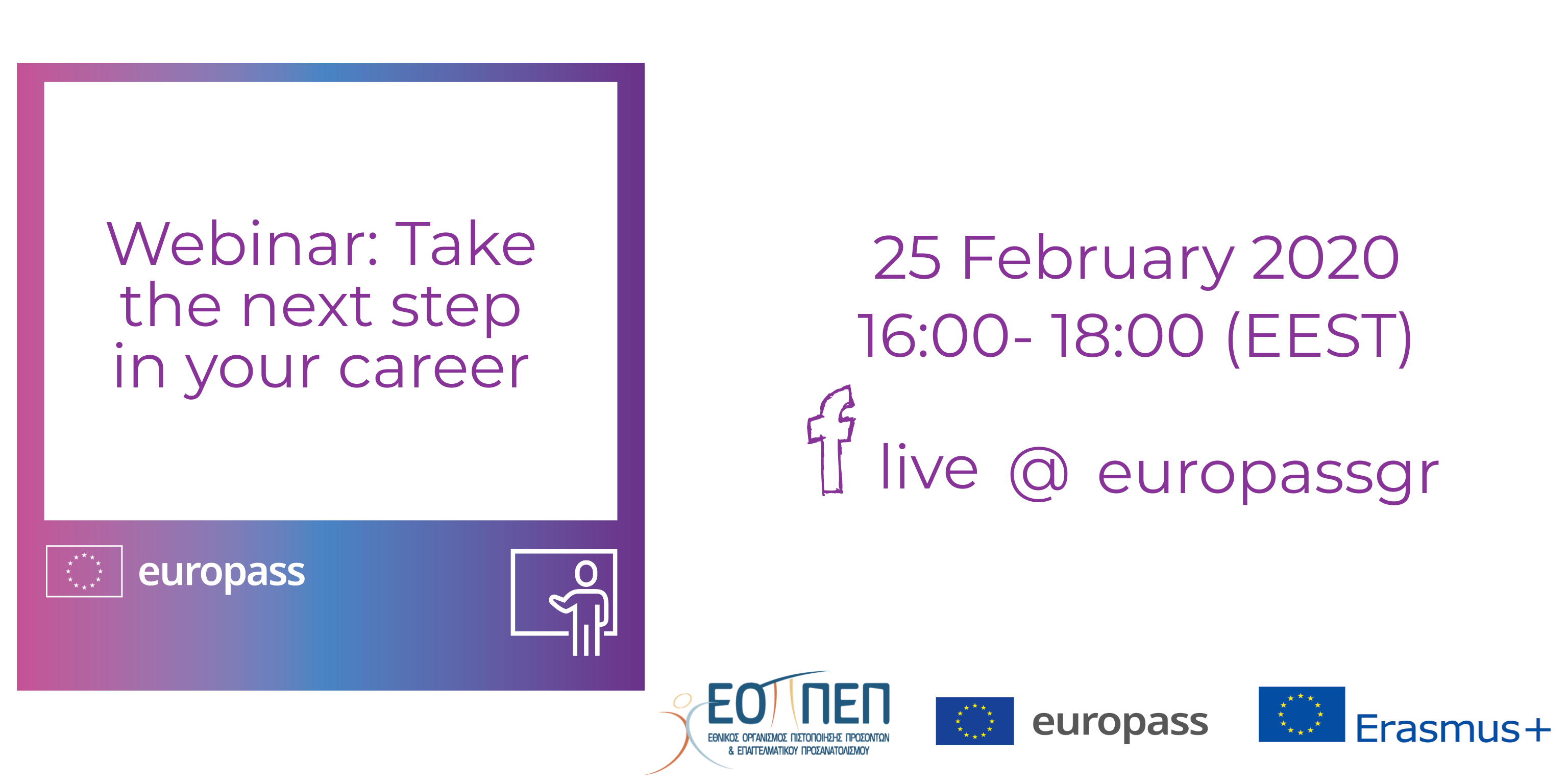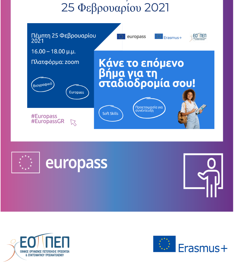 Με μεγάλη επιτυχία ολοκληρώθηκε την Πέμπτη 25 Φεβρουαρίου το webinar: Κάνε το επόμενο βήμα για τη Σταδιοδρομία σου, που διοργάνωσε το Εθνικό Κέντρο Europass Ελλάδος- ΕΟΠΠΕΠ.
