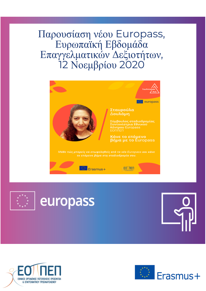 - Τέσσερα Χρόνια: EU Jobs and Mobility Roadshow (2016 – 2020) 16 Δεκεμβρίου 2020. Σ.Δουλάμη, Το νέο Europass ως εργαλείο στήριξης της σταδιοδρομίας